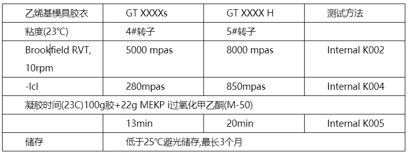 MAXGUARD GTXXXXS/H模具胶衣的基本树脂是环氧改性乙烯接酯树脂,特殊的基本树脂和配方设计赋予最终的模具表面高光亮型、耐化学性能及柔韧性。MAXGUARD™GT 结合了亚什兰独特的乙烯基技术,使得该乙烯基模具胶衣采用标准的过氧化甲乙酮而不产生冒泡现象,大大减少模具胶衣发生针孔的危睑,高达110℃的热变形温度可以承受较高的制品放热而不易损坏。其中GT 7520 H/S是黑色,GT 7068 S/H是橙红色,H型适于手糊,S型适于喷射.。